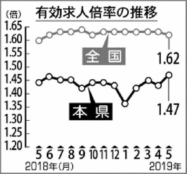 有効求人倍率1・47倍 県内5月<br />前月を0・04ポイント上回る