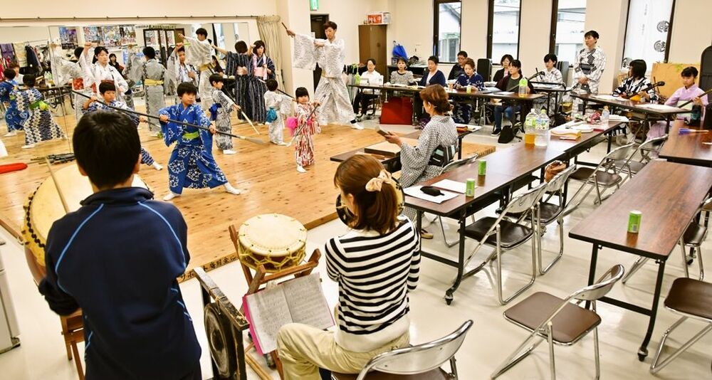 山あげ祭で初の試みとなる「こども歌舞伎舞踏」の練習風景。7月27日(土)午前9時から『将門』を演じます。