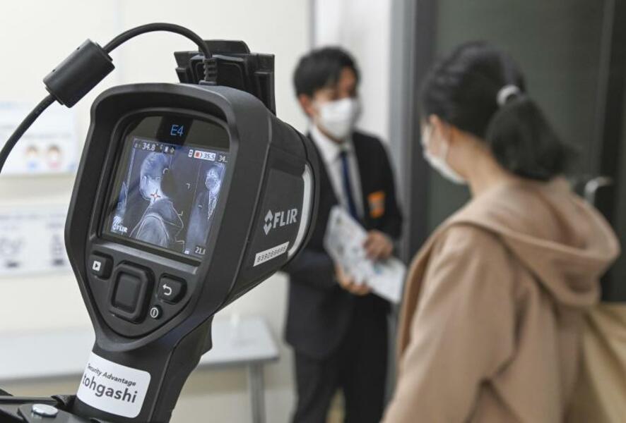 入り口では、サーモグラフィーで参加者の体温を測定していた=さいたま市