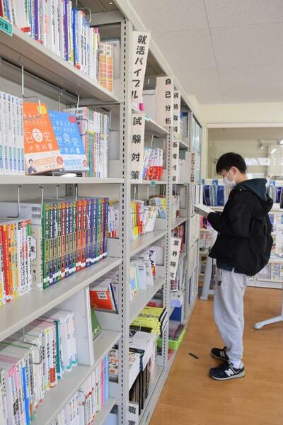 大学の就職支援窓口で資料に目を通す学生=5日午後、宇都宮大峰キャンパス