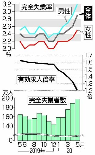 失業者200万人迫る<br />5月の全国 求人倍率、46年ぶり下げ幅