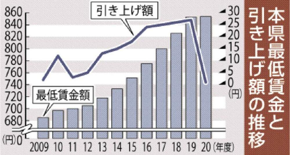 最低賃金 引き上げ1円<br />時給854円 本県、04年以来の低水準 コロナ禍、労使に逆風