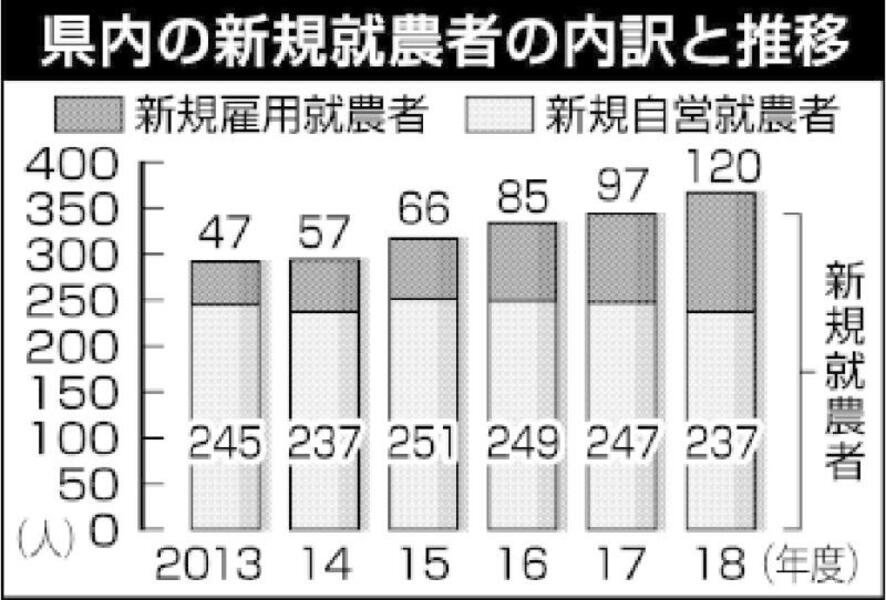 新規就農者 最多の357人<br />県18年度調査 雇用120人、全体押し上げ