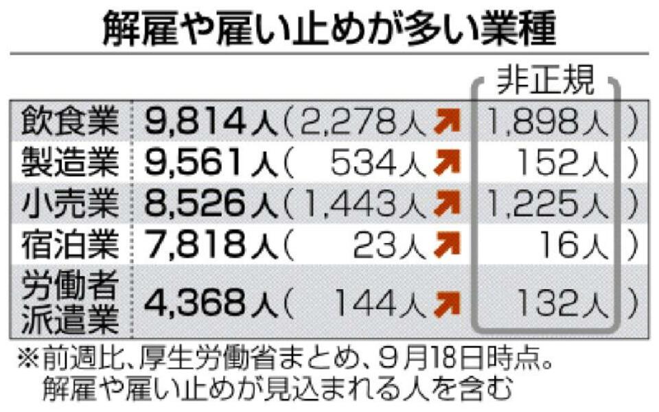 コロナ解雇6万人超<br />非正規中心に増加加速 厚労省集計 23日時点