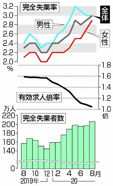 8月失業率悪化3.0%