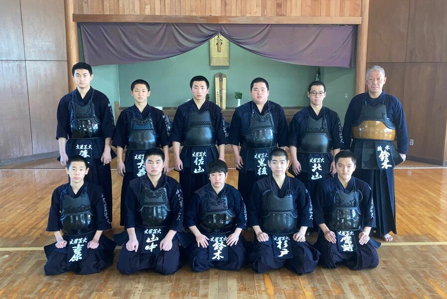 昨年2月の「第19回全日本短剣道大会男子団体高校生の部」で優勝した文星芸術大学附属高校剣道部の短剣道チーム。 左から杉戸 洪太(こうた)さん、鈴木 大空(たすく)さん、山中 大世(だいせい)さん