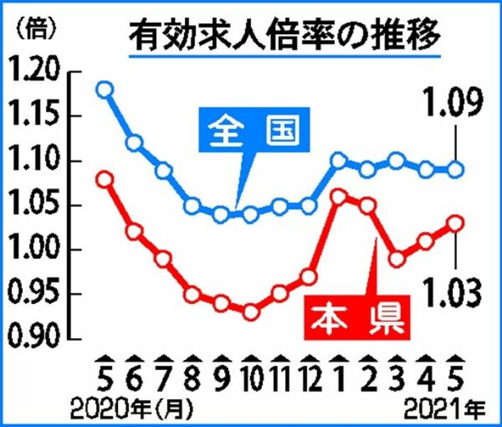有効求人倍率1・03倍<br />県内5月 2カ月連続で前月比増