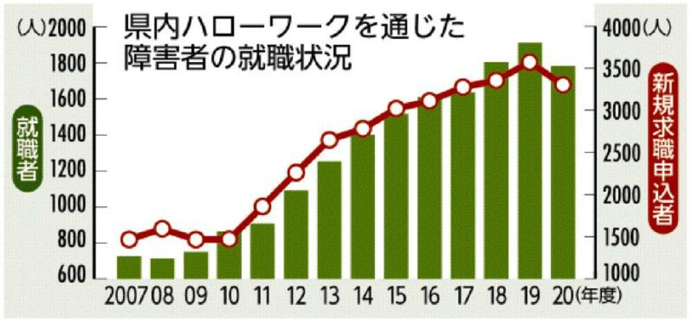 障害者就職 リーマン以来12年ぶり減<br />20年度 栃木労働局まとめ 1782人、コロナ禍自粛影響 就職率は増、全国平均超え