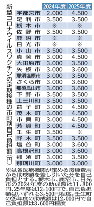 新型コロナワクチン、栃木県内15市町で自己負担額増加 2025年度から…