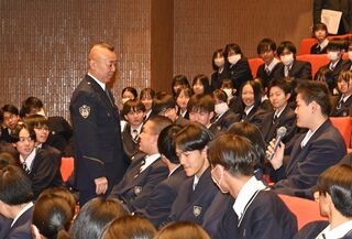 ゴルゴ松本さんが一日交通部長 宇都宮短大附属高で講演 生徒たちに命の大…