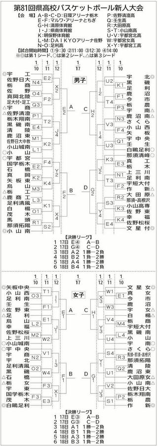栃木県高校新人バスケ、組み合わせ決まる 1月10日開幕【トーナメント表…