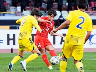 神村学園―鹿島学園 試合終了間際、チーム3点目のゴールを決める神村学園・佐々木(中央)=MUFG国立