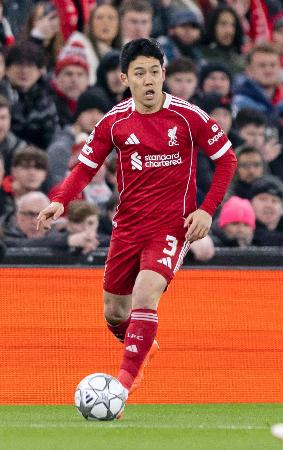 カラバフ戦の前半、攻め込むリバプールの遠藤=リバプール(共同)
