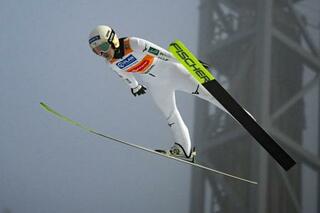 W杯ジャンプ女子個人第7戦で今季4勝目を挙げた丸山希の飛躍=クリンゲンタール(共同)