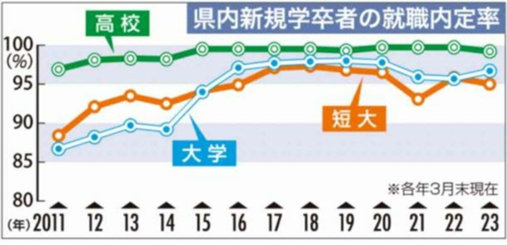 高校生内定率99.2%<br />県内3月末 求人倍率は最高2.87倍