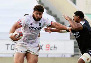 BR東京―トヨタ 後半、突進するトヨタのトゥイプロトゥ。この後トライを決める=秩父宮