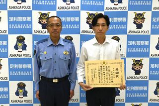 車道に倒れていた40代男性を保護 足利署が感謝状 雨降る深夜の運転中に…