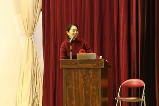生徒を代表してあいさつした生徒会長の斎藤さん