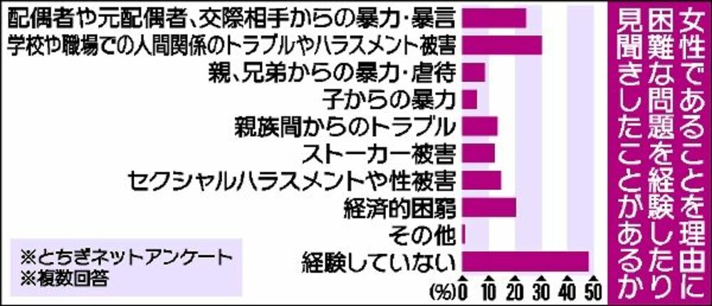 潜む家庭内不平等 女性の悩み「パートナー」2割 男性も生きづらさ訴え