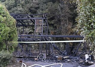 全焼したとみられる木造2階建て住宅=29日午後4時20分、足利市駒場町