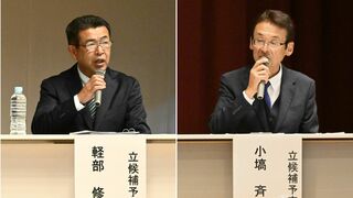 市貝町長選に出馬予定の2氏が公開討論 子育て、高齢者支援などテーマに論…