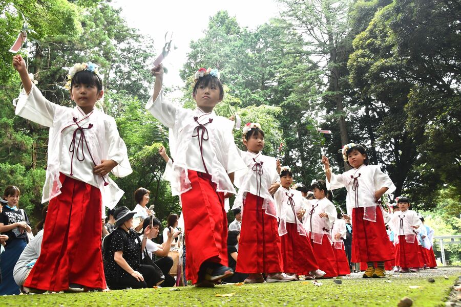 大田原神社にフラダンス奉納 幼児から80代の教室生徒50人が優雅に披露