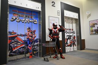 エレベーターをご当地ヒーローにラッピング 子育て応援で小山のイオン