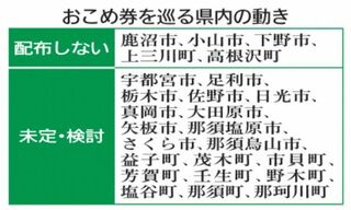 おこめ券、5市町が「配布しない」 栃木県内 米どころで機運乏しく、他の…