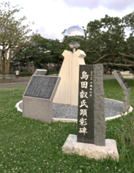 島田叡の母校である兵庫高校には卒業生である島田叡を後世まで顕彰するため建てられた碑がある。この「合掌の碑」は、遠く沖縄の方向を向いており、合掌をしているデザインとなっている。兵庫・沖縄友愛グラウンドに建てられた島田叡顕彰碑と向き合っている。また沖縄、兵庫両県は1972年、沖縄の本土復帰の年に友愛提携を結び、兵庫県は1975年に「沖縄・兵庫友愛スポーツセンター」を寄贈。現在、プロ野球の巨人がキャンプ中にサブグラウンドとしている場所は「兵庫・沖縄友愛グラウンド」と命名されている。