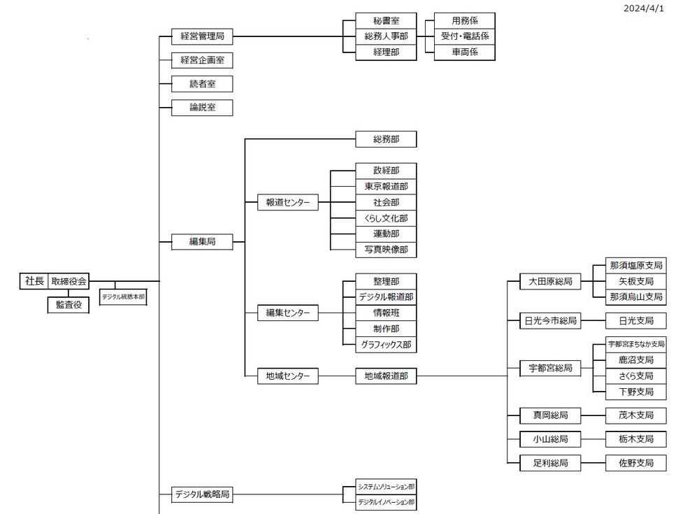 関連会社 | 下野新聞印刷センター、下野ビル、栃木ダイレクトコミュニケーションズ |