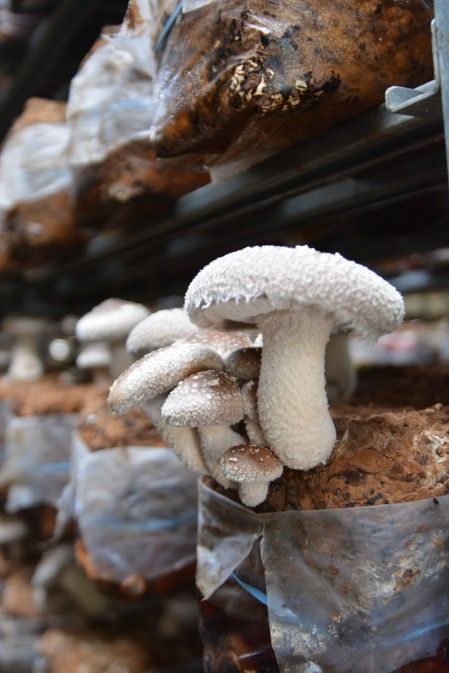 <134>JAしおのやの「菌床シイタケ」 肉厚でうま味たっぷり 冷暖房完備で年間出荷