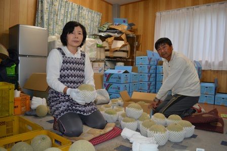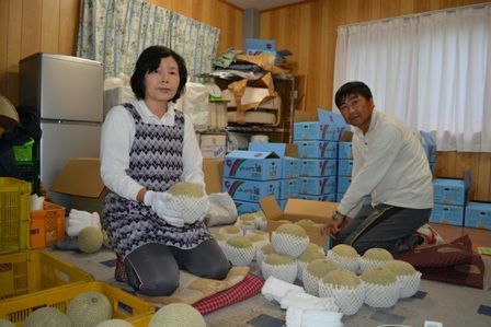 <106>はが野のメロン出荷最盛期 さわやかな初夏の甘味 網目づくりに細心の注意