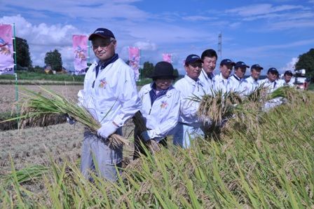 <98>県産ブランド米を収穫 「良食味」海外にもPR 国内外で市場拡大目指す