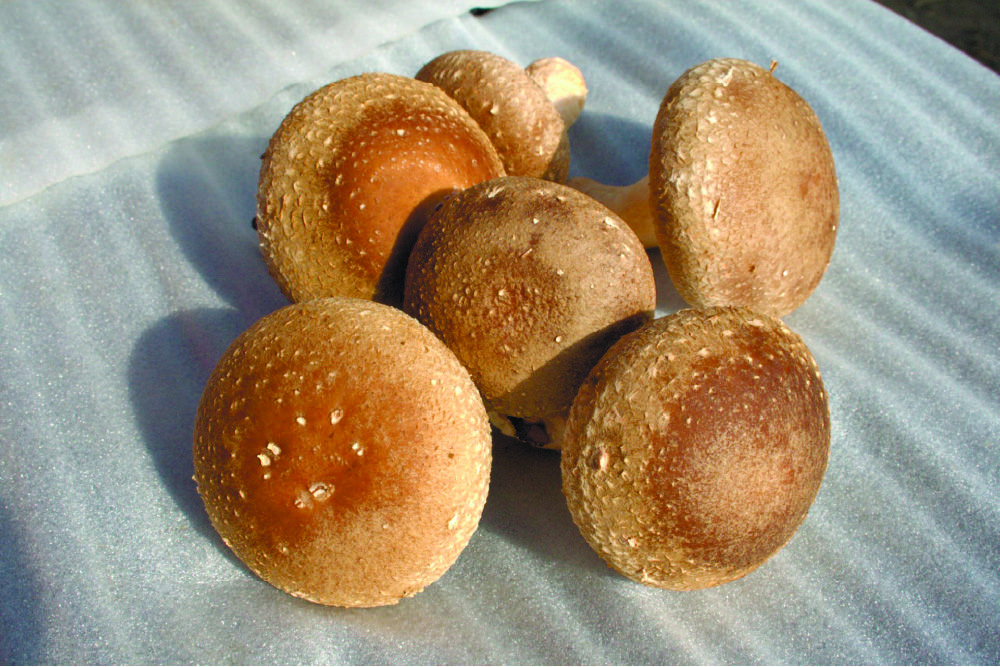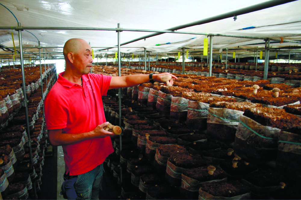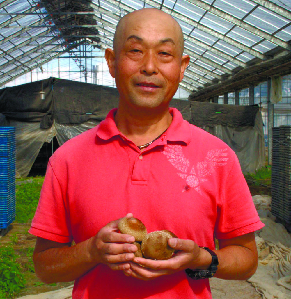 水や温度の管理に神経を使う菌床栽培のシイタケ