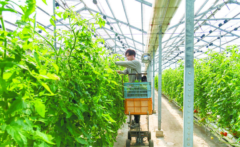 ロックウール栽培で太陽に向かって高く伸ばす