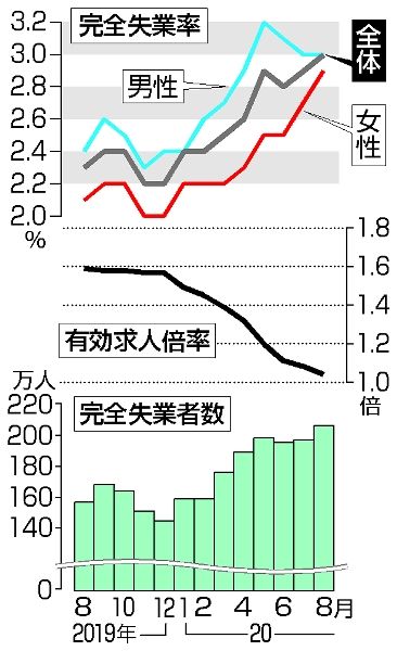8月失業率悪化3.0%