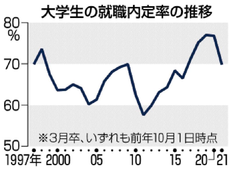 10月時点 大卒、5年ぶり70%割れ -