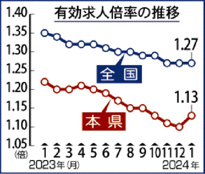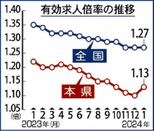 県内1月の有効求人倍率 1・13倍、判断は据え置き -