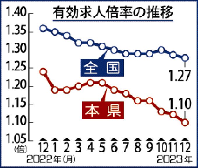 昨年12月・県内有効求人倍率 4カ月連続 判断据え置く -