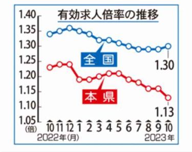 10月の県内有効求人倍率 「持ち直しの動き足踏み」 -