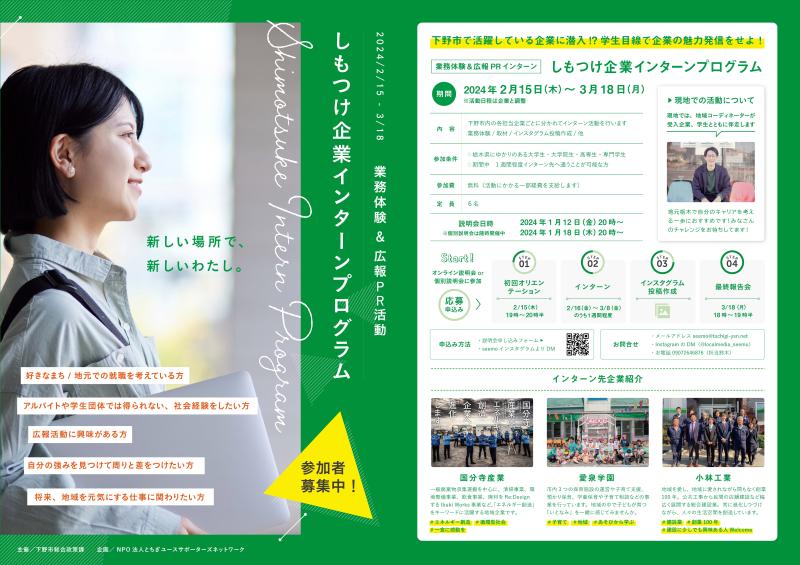 下野市が18日説明会 インターン参加募る -