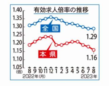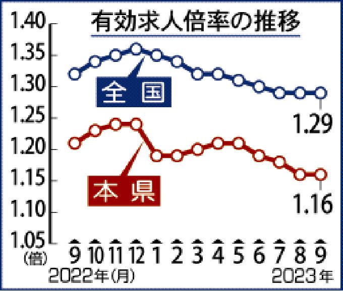 県内求人倍率1・16倍 9月 雇用情勢判断据え置き