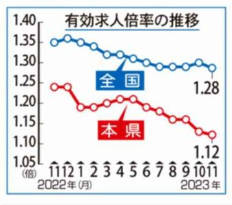 11月の県内有効求人倍率 3カ月連続判断据え置き -