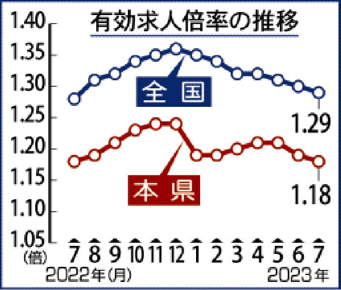 県内7月末 人手不足加速、求職者も減