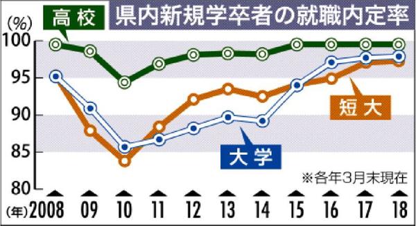 大卒就職内定97・9% 県内今春卒業者