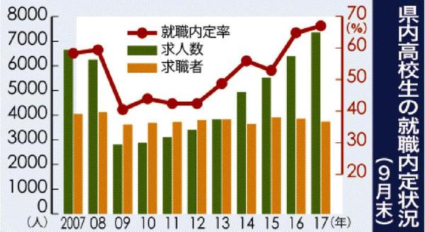 高校生就職内定率67% 県内9月末 2年連続で最高更新