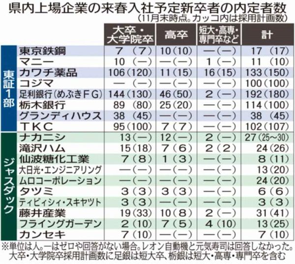 大学生7割 就職内定 栃木労働局11月末現在 高校生9割、「売り手」背景