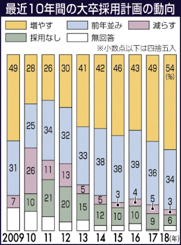 大卒採用増が過半数 10年ぶり、建設など目立つ 来春の県内企業 本紙調査