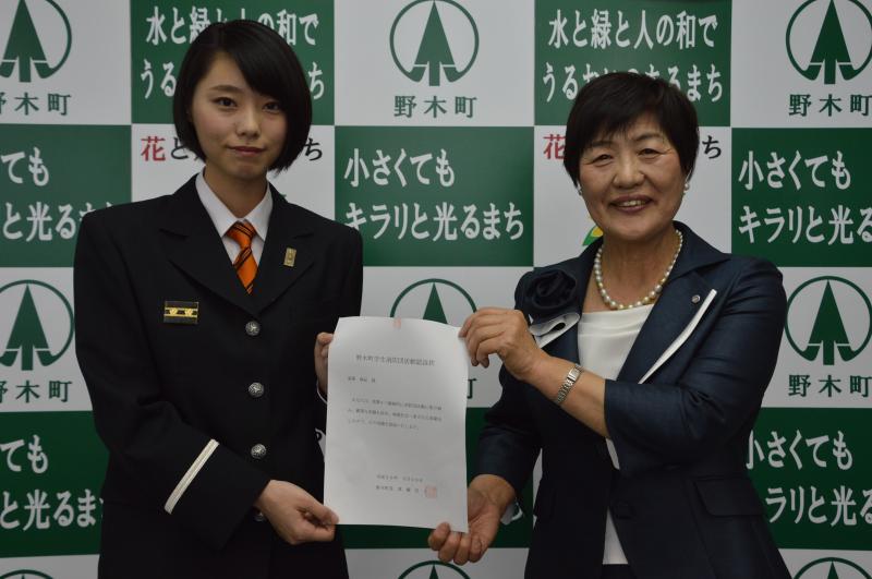 遠藤さんに県内初交付 野木町の学生消防団活動認証 教室や広報活動を評価