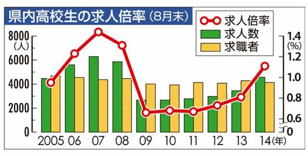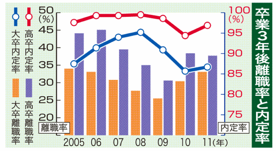 3年後離職率33%/2.7ポイント増、リーマン後最高/県内11年大卒